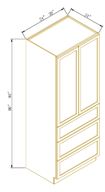 24X96-TALL PANTRY WITH 3 DRAWERS, TWO DOORS