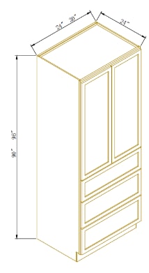 24X96-TALL PANTRY WITH 3 DRAWERS, TWO DOORS